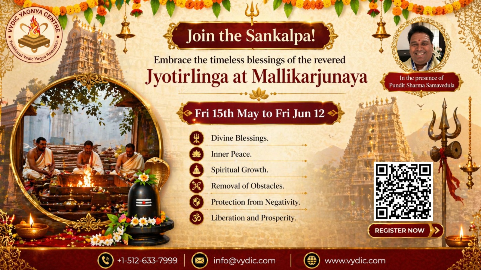 This month Mallikārjuna Jyotirlinga Abhishekam from May 15th – June 12th, 2026