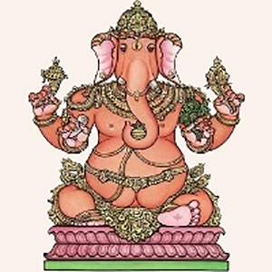 Rinamochana Ganapati is the form of Lord Ganesha that liberates humanity from worldly bondage and guilt. He is depicted to be wearing red silk clothing. In his 4 hands, he holds a tusk, a rose apple (his favorite fruit), a noose, and a goad.