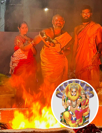 This Yagya symbolizes the victory of divine light over darkness and righteousness (dharma) over adversity. Lord Nṛsiṁha destroys fear and negativity, while Goddess Lakṣmī bestows peace, abundance, and well-being. The Pāśupata power of Śiva purifies karma and restores balance, guiding devotees toward spiritual strength and prosperity rooted in dharma.